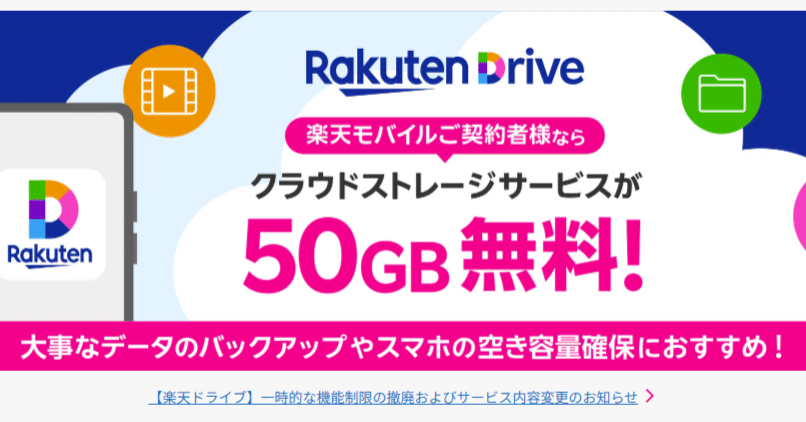 楽天ドライブは、オンラインでデータを保存・管理できるクラウドストレージサービスです。スマートフォンやPCから簡単にアクセスでき、写真や動画、ドキュメントなどを安全に保存することができます。特に、以下のような特徴があります: